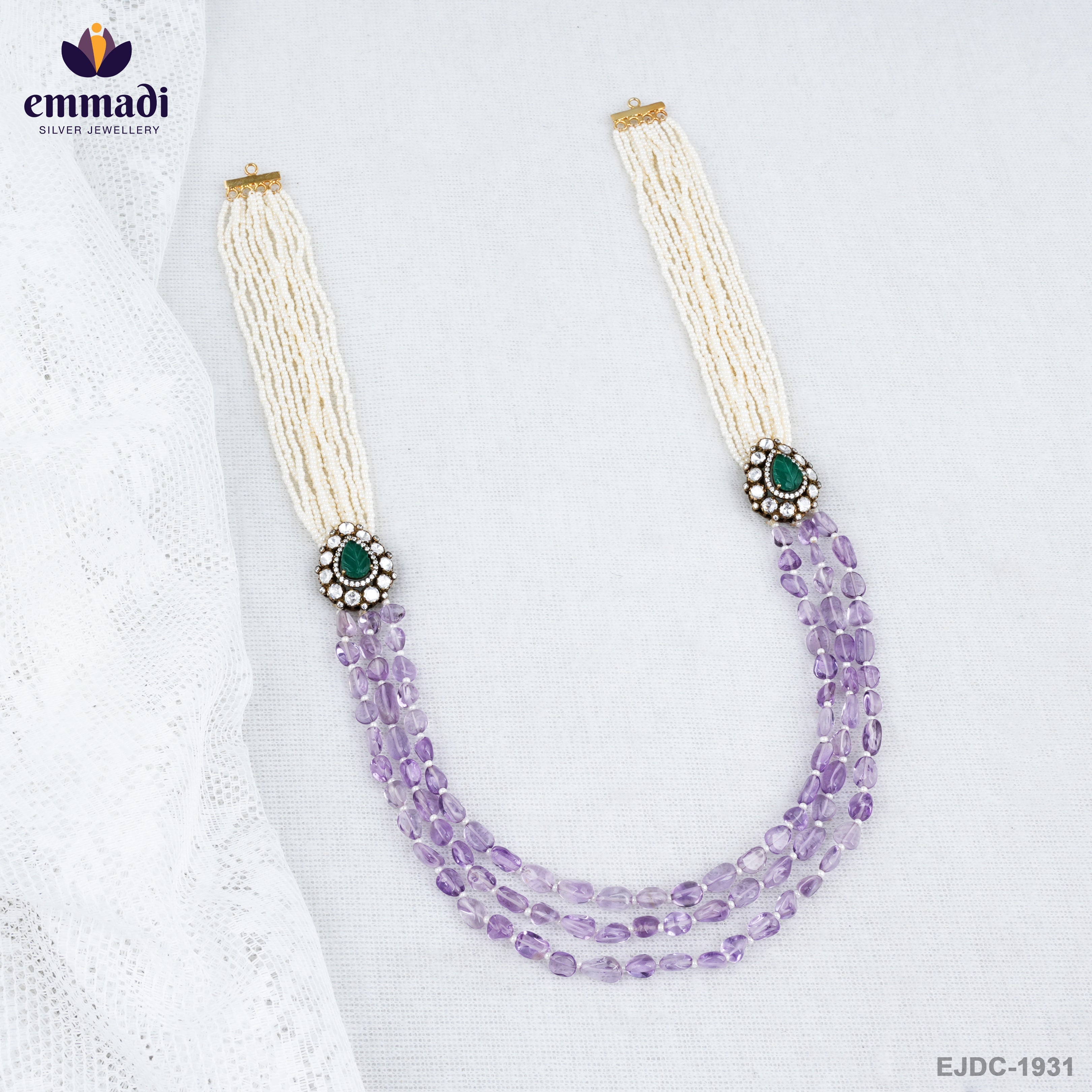 Discover the enchanting charm of the Amaravathi Exquisite Victorian Green Necklace, a stunning piece that captures the timeless elegance of Victorian design. This long necklace features an intricate array of meticulously crafted elements that celebrate the artistry of silver craftsmanship.