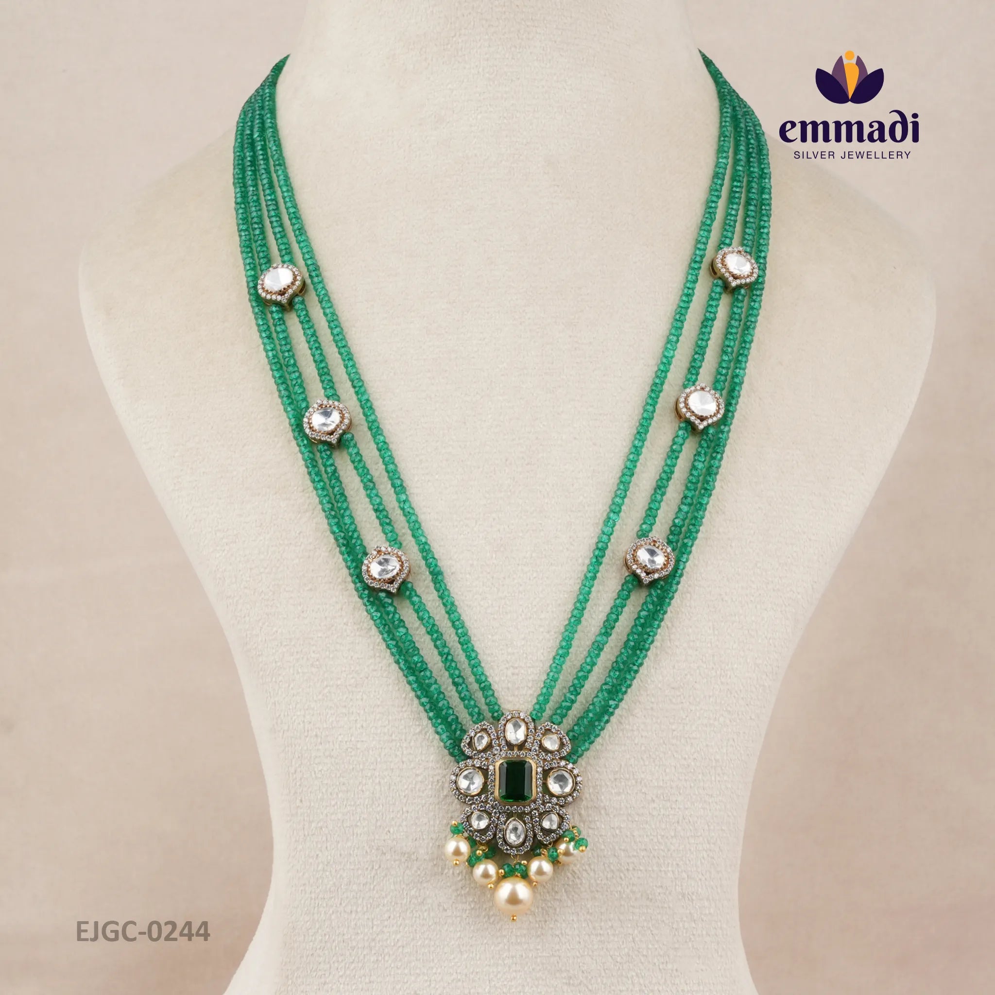 Indulge in opulence with the Iram Victorian Green Long Necklace by Emmadi Silver Jeweller, India's Largest silver brand. This exquisite piece exudes timeless elegance and sophistication, making it a must-have for those with a taste for luxury. Let the Victorian-inspired design and captivating green accents elevate your ensemble, adding a touch of grace and glamour to any occasion. Elevate your personal style with this stunning statement piece.