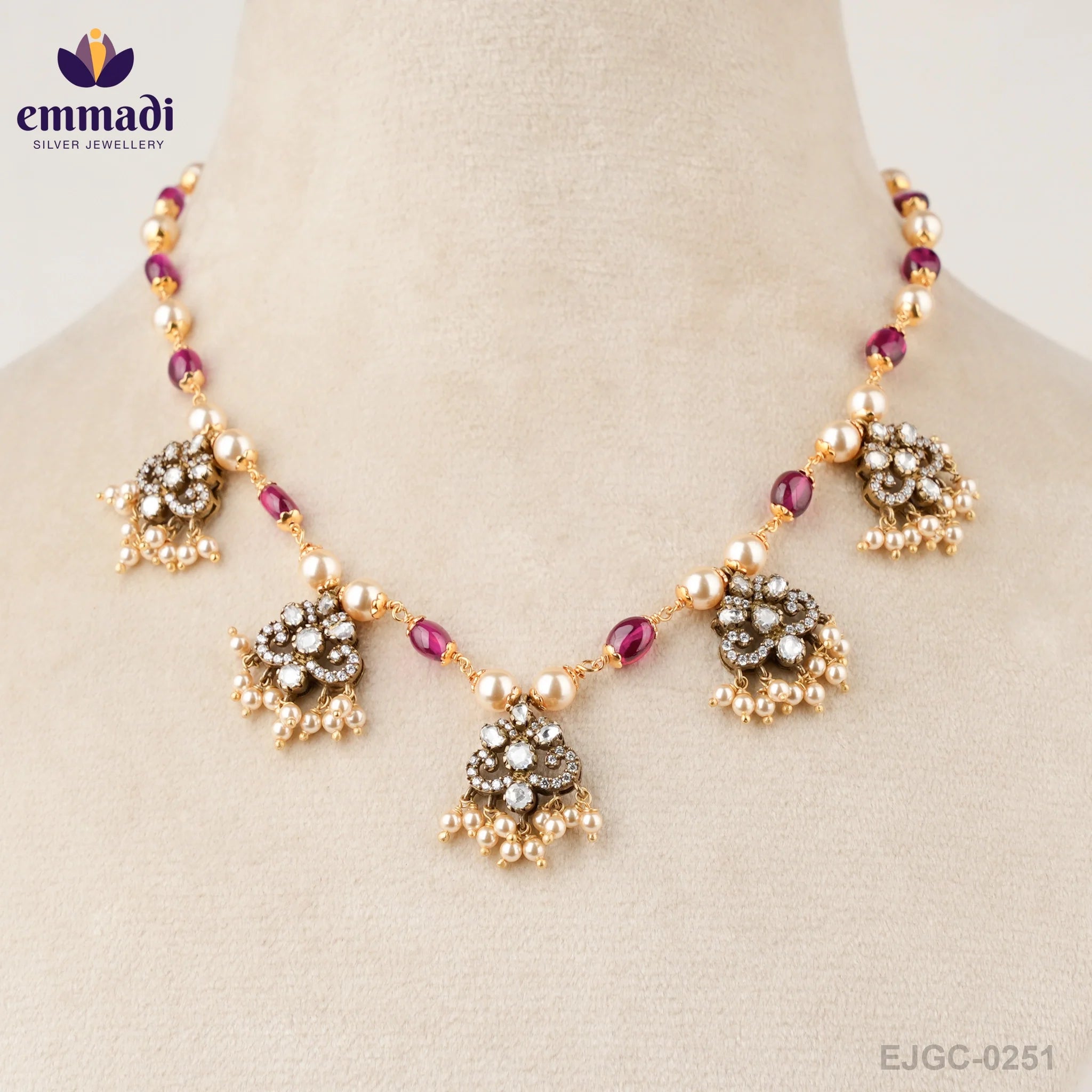 Indulge in timeless elegance with the Kusum Victorian Pink Chain by Emmadi Silver Jeweller, India's Largest silver brand. Crafted to perfection, this exquisite piece exudes sophistication and grace. Elevate your style effortlessly with this luxurious accessory that whispers opulence with every wear. Stand out from the crowd and make a statement with the Kusum Victorian Pink Chain.
