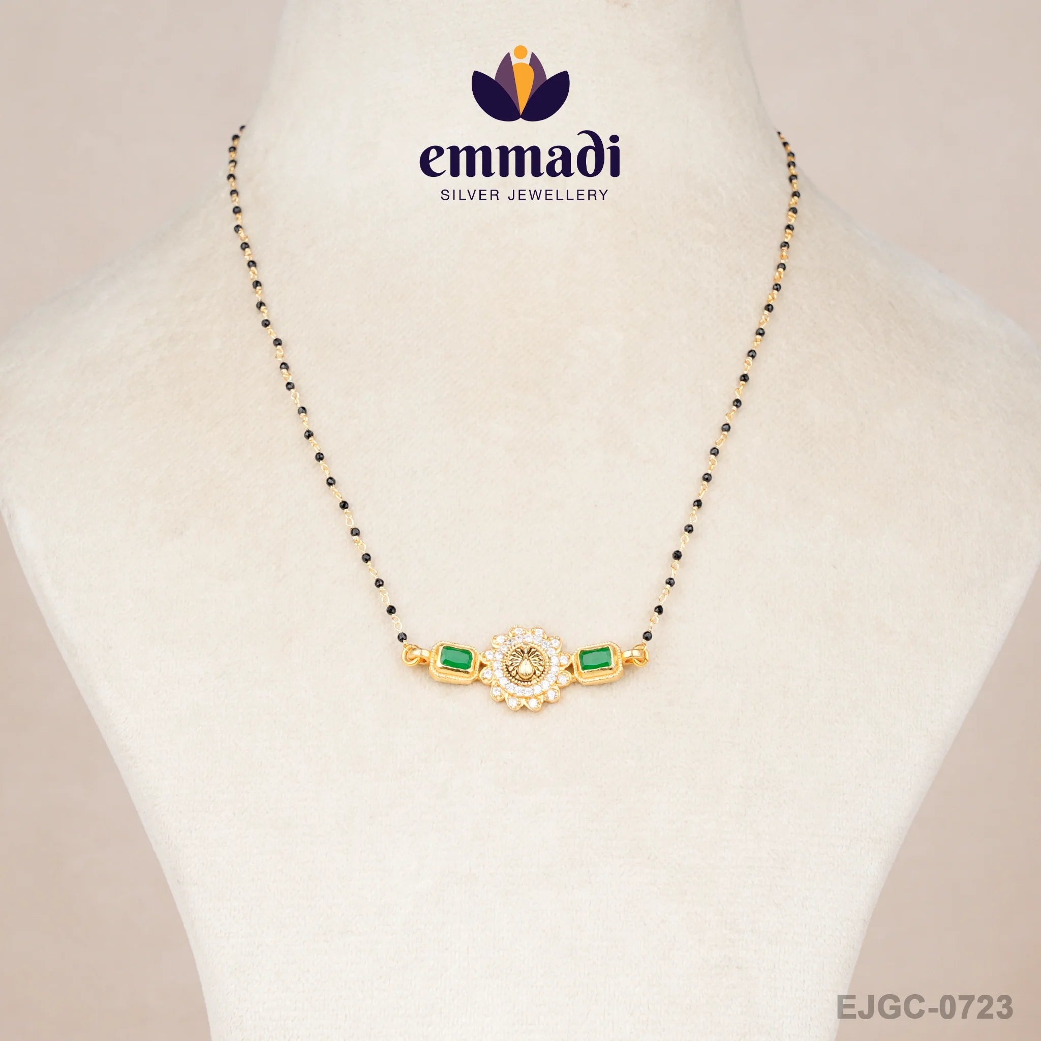 Indulge in the elegance of Navkiran's Nallapusalu Green Chain, a masterpiece crafted by Emmadi Silver Jeweller, India's Largest silver brand. Elevate your ensemble with this luxurious chain, designed for those who appreciate the finer things in life. Imbued with sophistication and style, this exquisite piece exudes a sense of opulence and glamour. Make a statement with the Navkiran Nallapusalu Green Chain, a symbol of refined taste and timeless beauty.