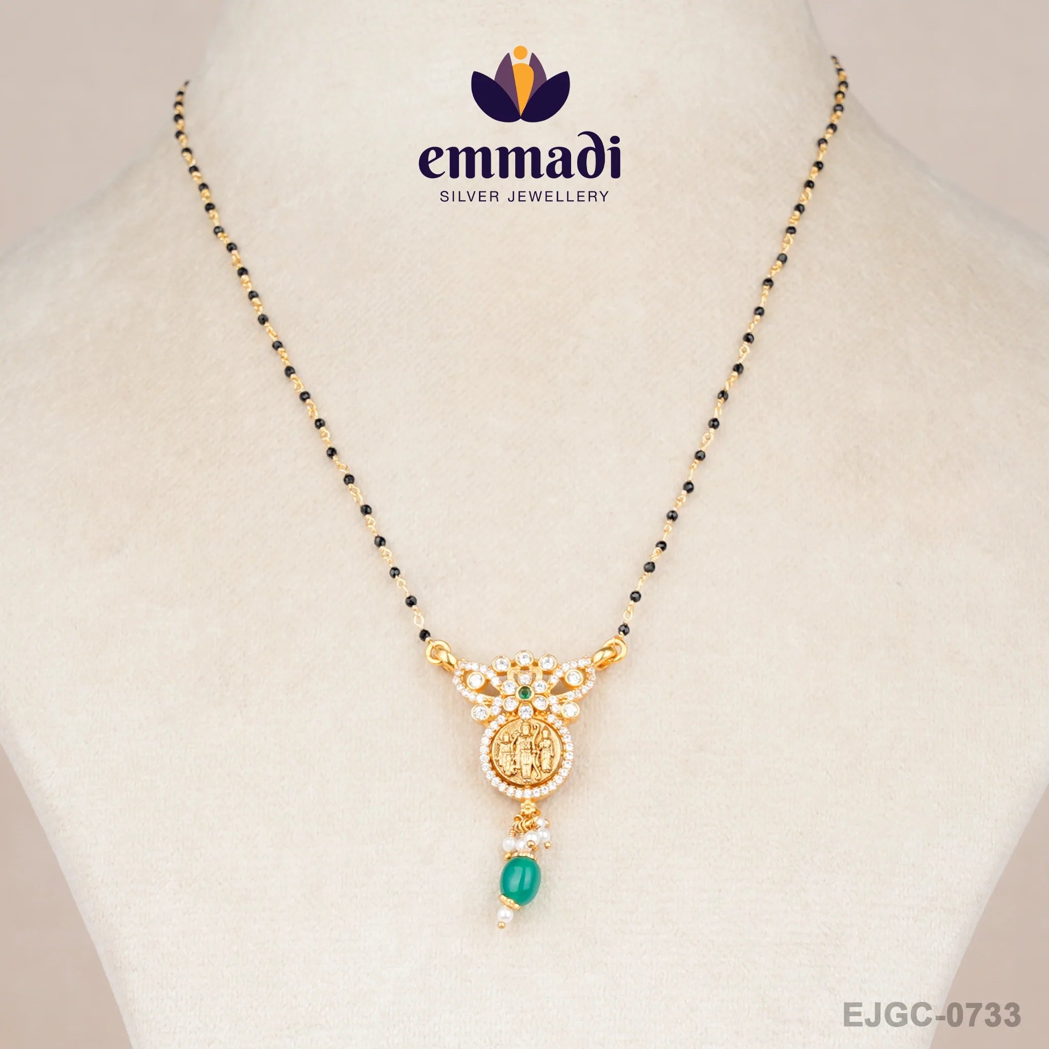 Indulge in the exquisite elegance of the Premleen Nallapusalu Green Chain, brought to you by Emmadi Silver Jeweller, India's Largest silver brand. Elevate your style with this mesmerising piece that exudes luxury and sophistication. Crafted with precision and adorned with enchanting green detailing, this chain is a symbol of opulence and glamour. Make a statement and dazzle onlookers with the epitome of beauty and grace draped around your neck. Embrace the allure of this stunning piece and elevate your everyday look to extraordinary heights.