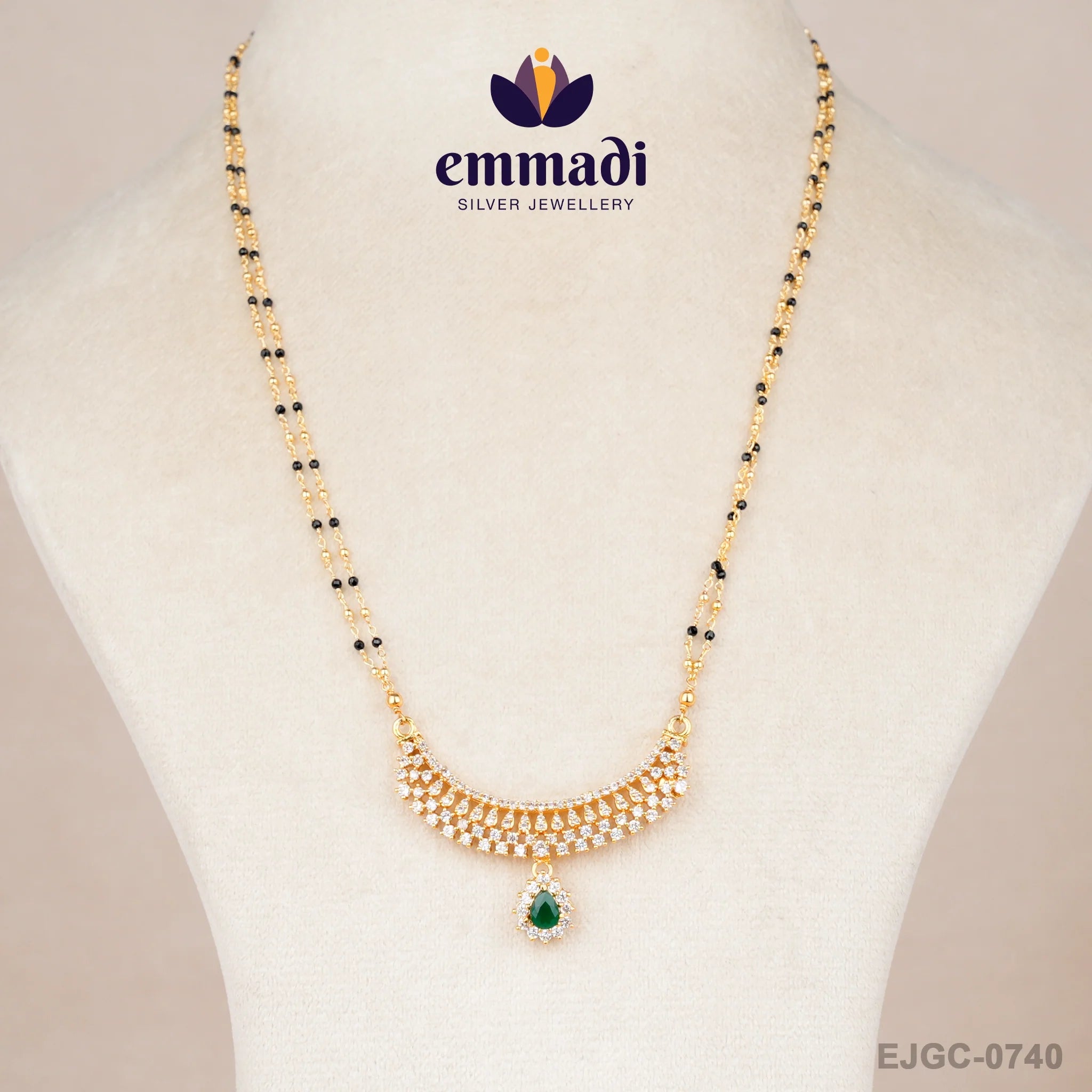 Indulge in the exquisite beauty of the Haarsheen Nallapusalu Green Chain by Emmadi Silver Jeweller, India's Largest silver brand. Crafted with precision and passion, this stunning green chain exudes luxury and charm with every gleaming link. Elevate your style to new heights with this captivating piece that radiates elegance and sophistication. Make a statement wherever you go with this exceptional accessory that showcases your impeccable taste and refinement. Experience the allure of timeless beauty with the Haarsheen Nallapusalu Green Chain - a true masterpiece of craftsmanship.