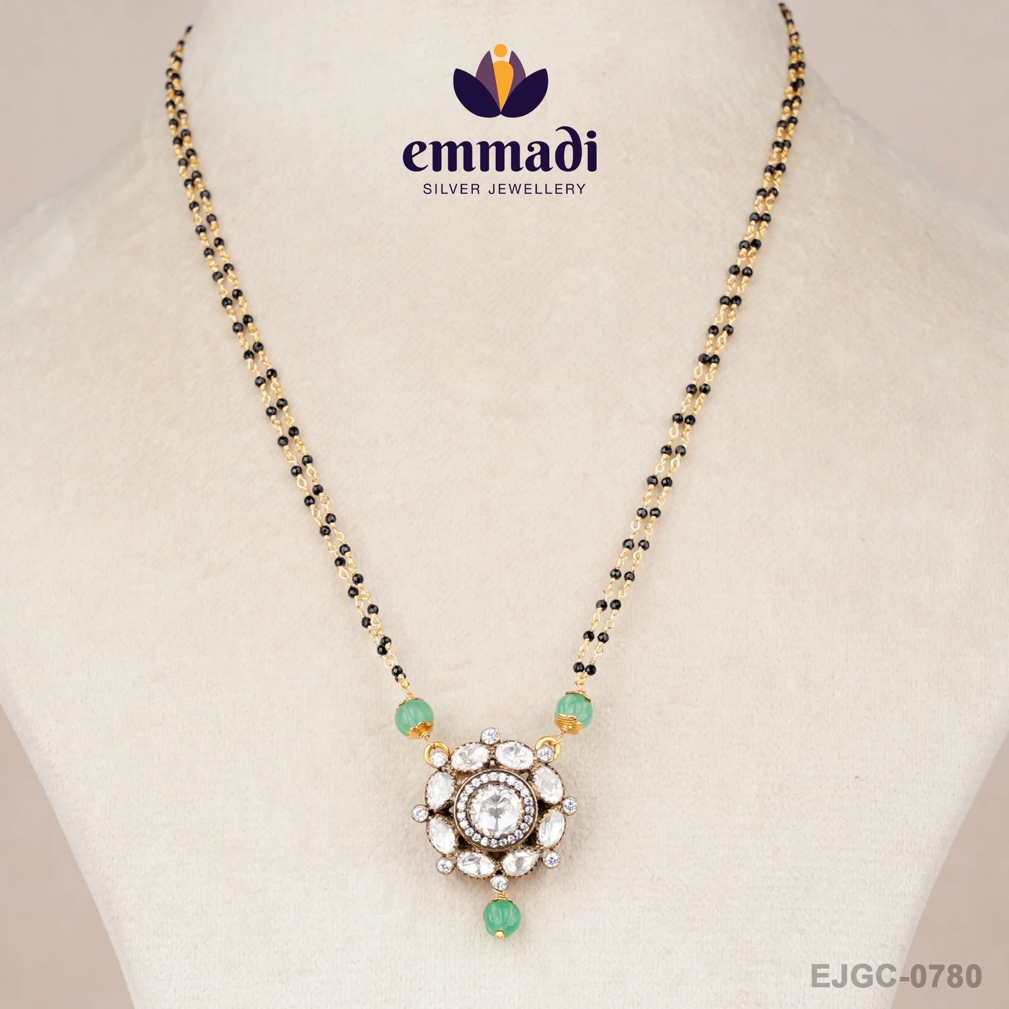 Indulge in the timeless elegance of the Kanwalnain Nallapusalu White Chain, crafted by Emmadi Silver Jeweller, India's Largest silver brand. Elevate your look with this exquisite piece that exudes sophistication and grace. Immerse yourself in the opulent beauty of this white chain, perfect for adding a touch of luxury to any outfit. Make a statement of refinement and style with this stunning accessory that epitomises grandeur and prestige.