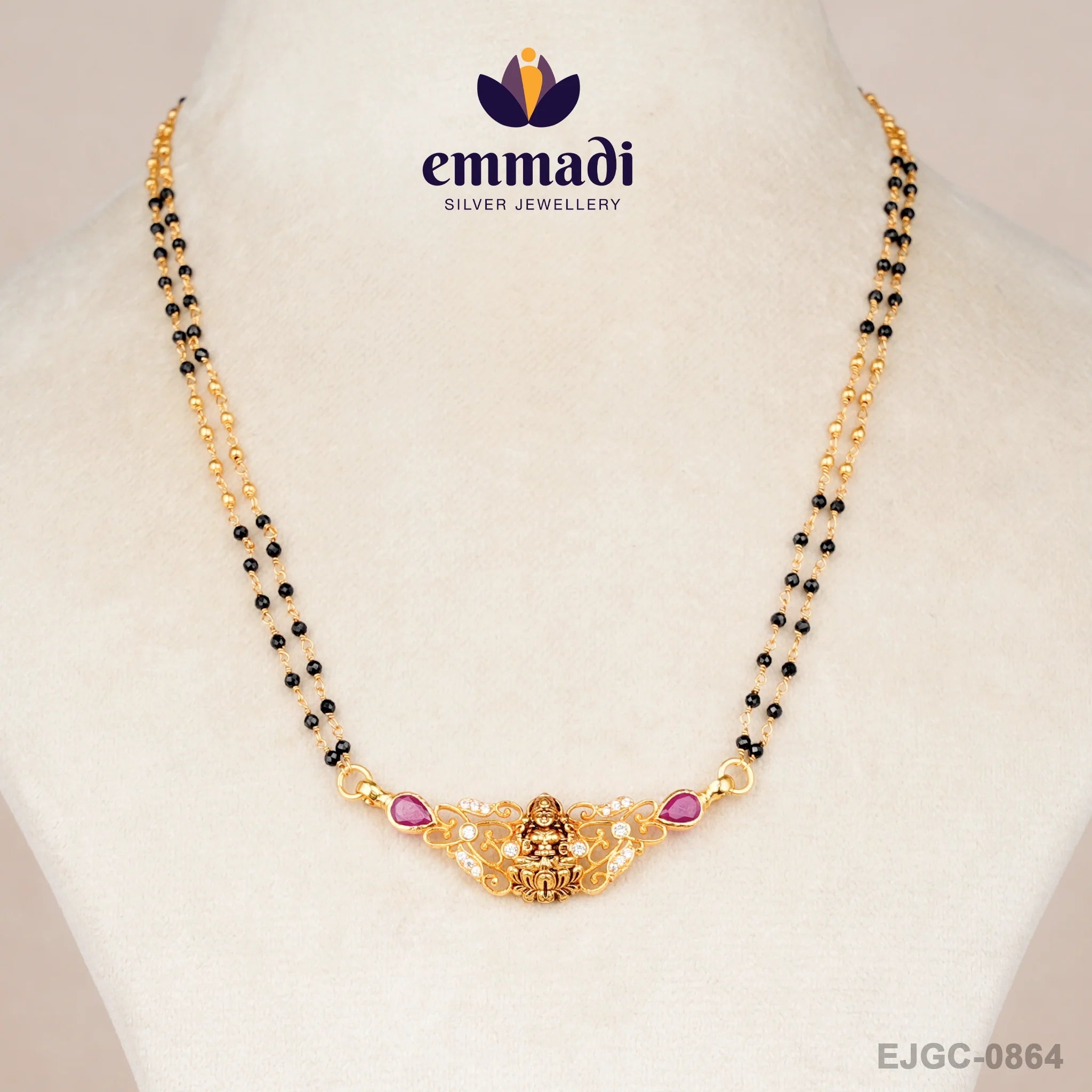 Indulge in the opulence of Raktakanchan Nallapusalu Multi Chain by Emmadi Silver Jeweller, India's Largest silver brand. Elevate your style with this exquisite multi-chain necklace, meticulously crafted to add a touch of sophistication to every outfit. Embrace the allure of fine craftsmanship and make a statement that whispers elegance and glamour. Adorn yourself in luxury with this stunning piece that exudes timeless charm.