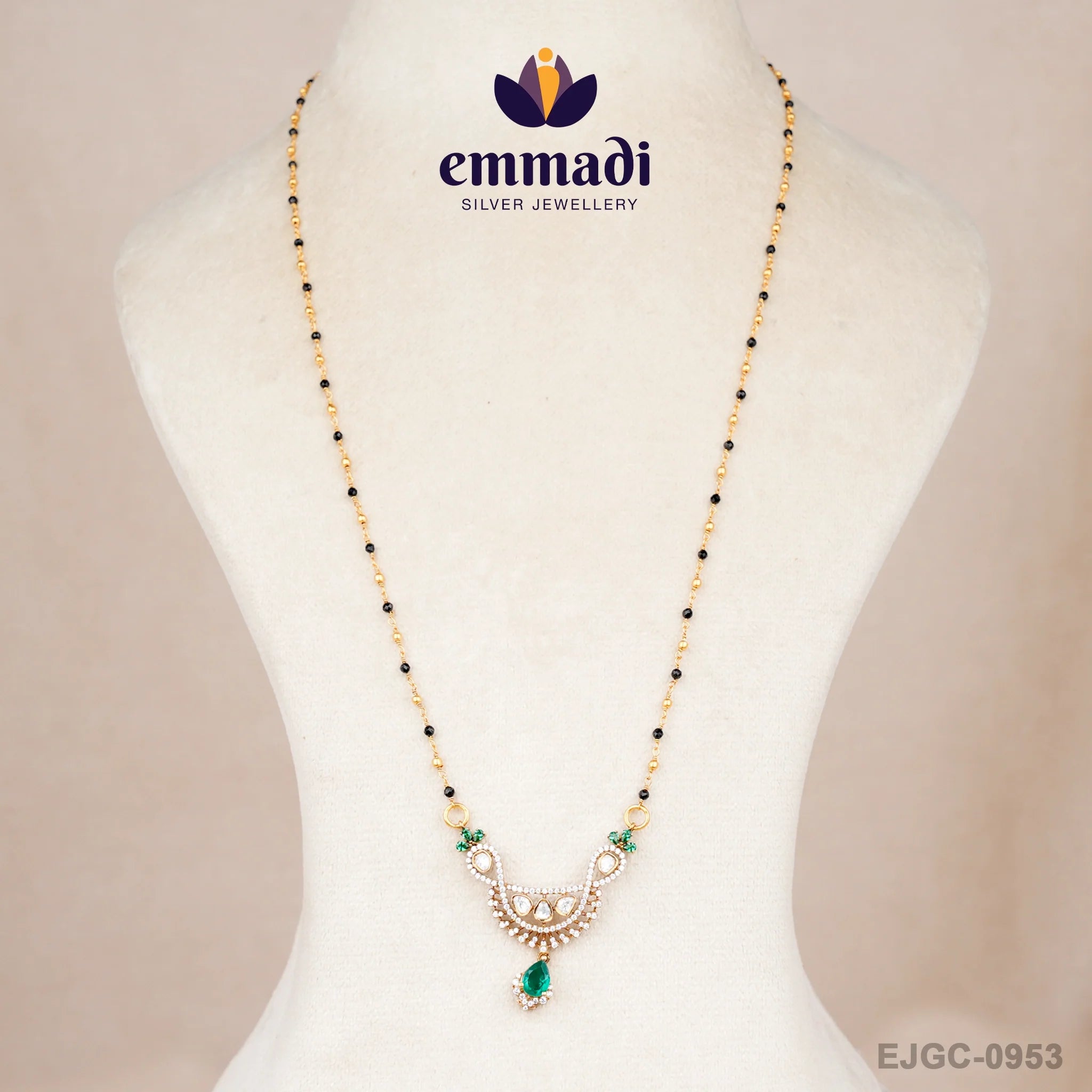 Indulge in the sophisticated elegance of the Baldeep Nallapusalu Red Chain, a true masterpiece crafted by Emmadi Silver Jeweller, India's Largest silver brand. Elevate your style with this exquisite piece that seamlessly combines tradition and luxury. Let the allure of the vibrant red pendant captivate all who gaze upon it, making a bold statement wherever you go. Redefine opulence and charm with this impeccable red chain that whispers tales of grandeur and beauty. Experience the epitome of sophistication with Baldeep Nallapusalu Red Chain.