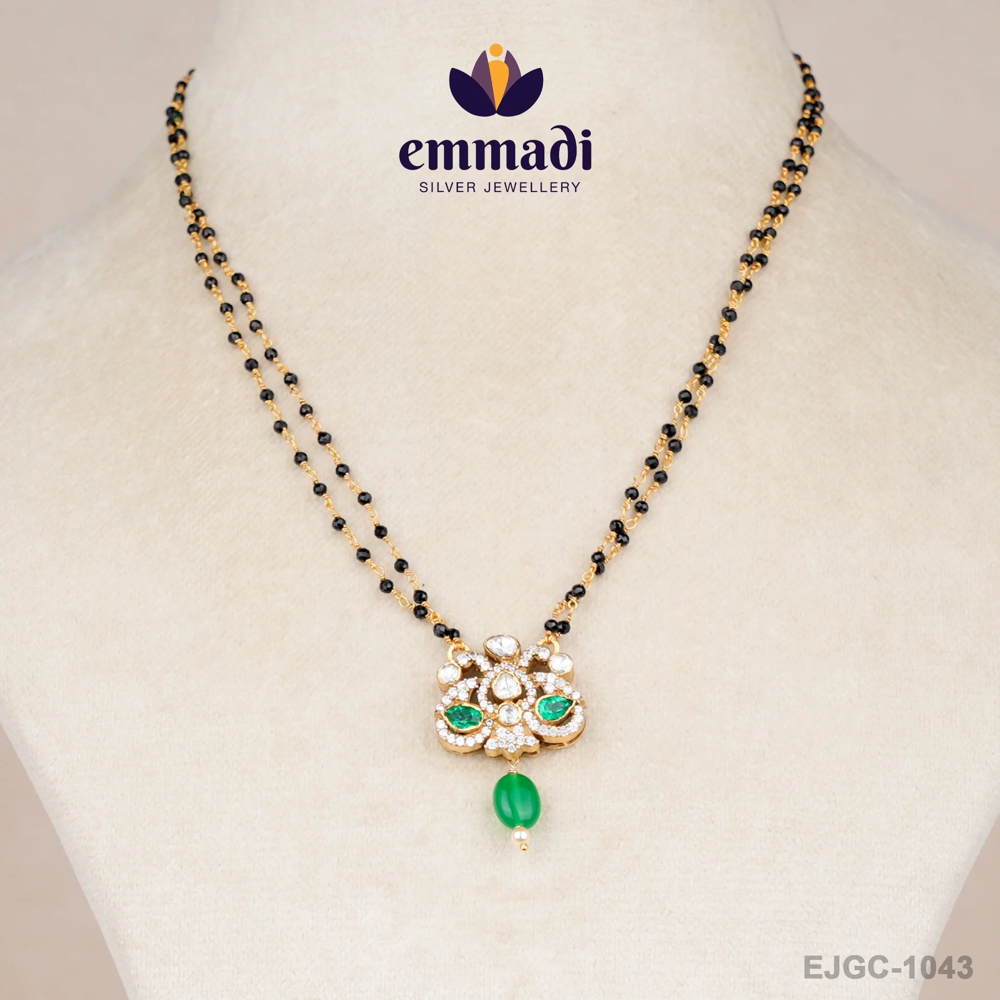 Indulge in the epitome of elegance with the Manroop Nallapusalu Black Chain by Emmadi Silver Jeweller, India's Largest silver brand. With its timeless allure and exquisite craftsmanship, this black chain is a sophisticated statement piece that exudes luxury and style effortlessly. Elevate your look with the perfect touch of finesse and sophistication.