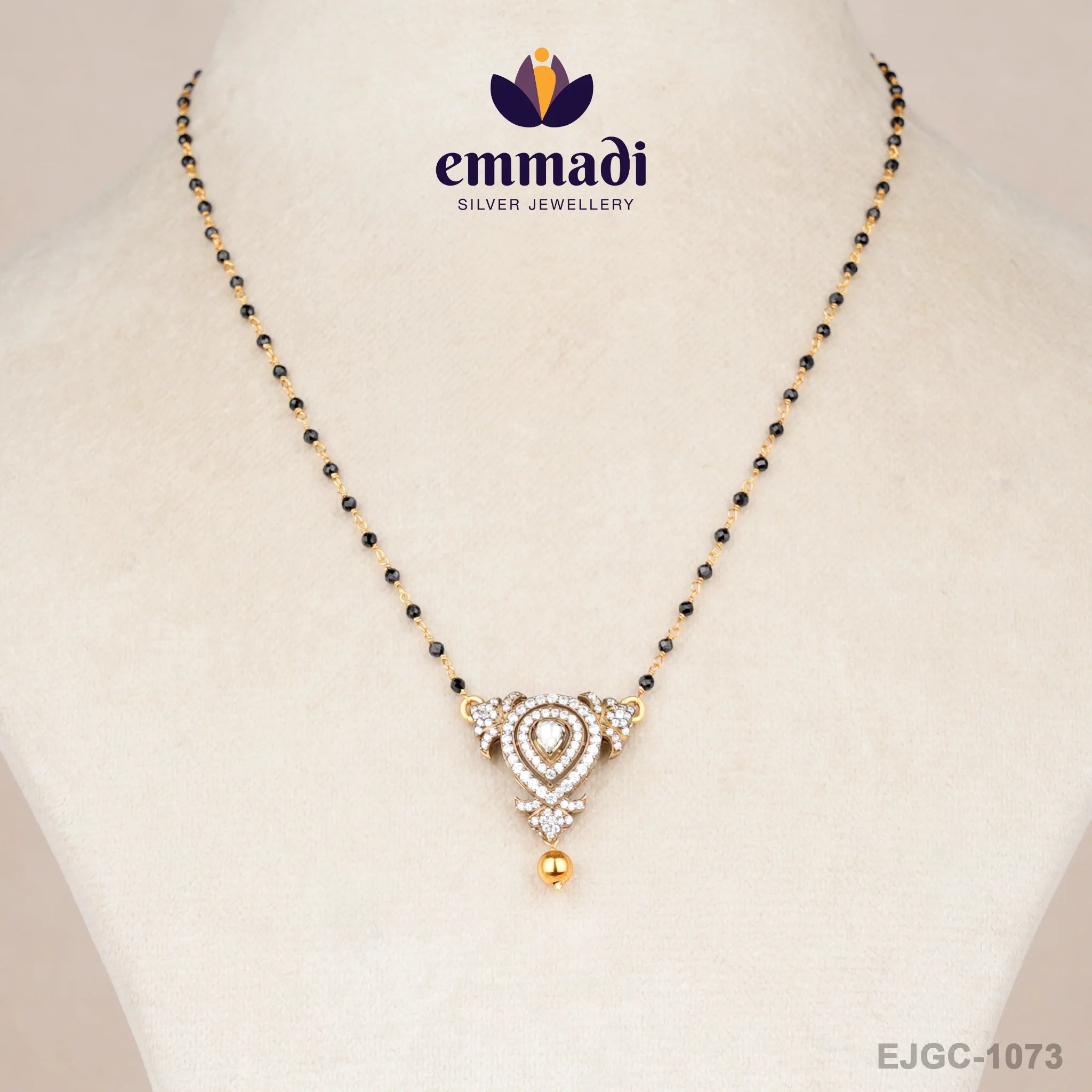 Indulge in the elegance of the Haranoop Nallapusalu White Chain by Emmadi Silver Jeweller, India's Largest silver brand. This exquisite piece effortlessly exudes sophistication and refinement, making it a must-have accessory for those with a taste for luxury. Elevate your style with this timeless chain that whispers opulence with every flicker of light. Enhance your ensemble and step into a world of pure sophistication with this stunning Haranoop Nallapusalu White Chain.