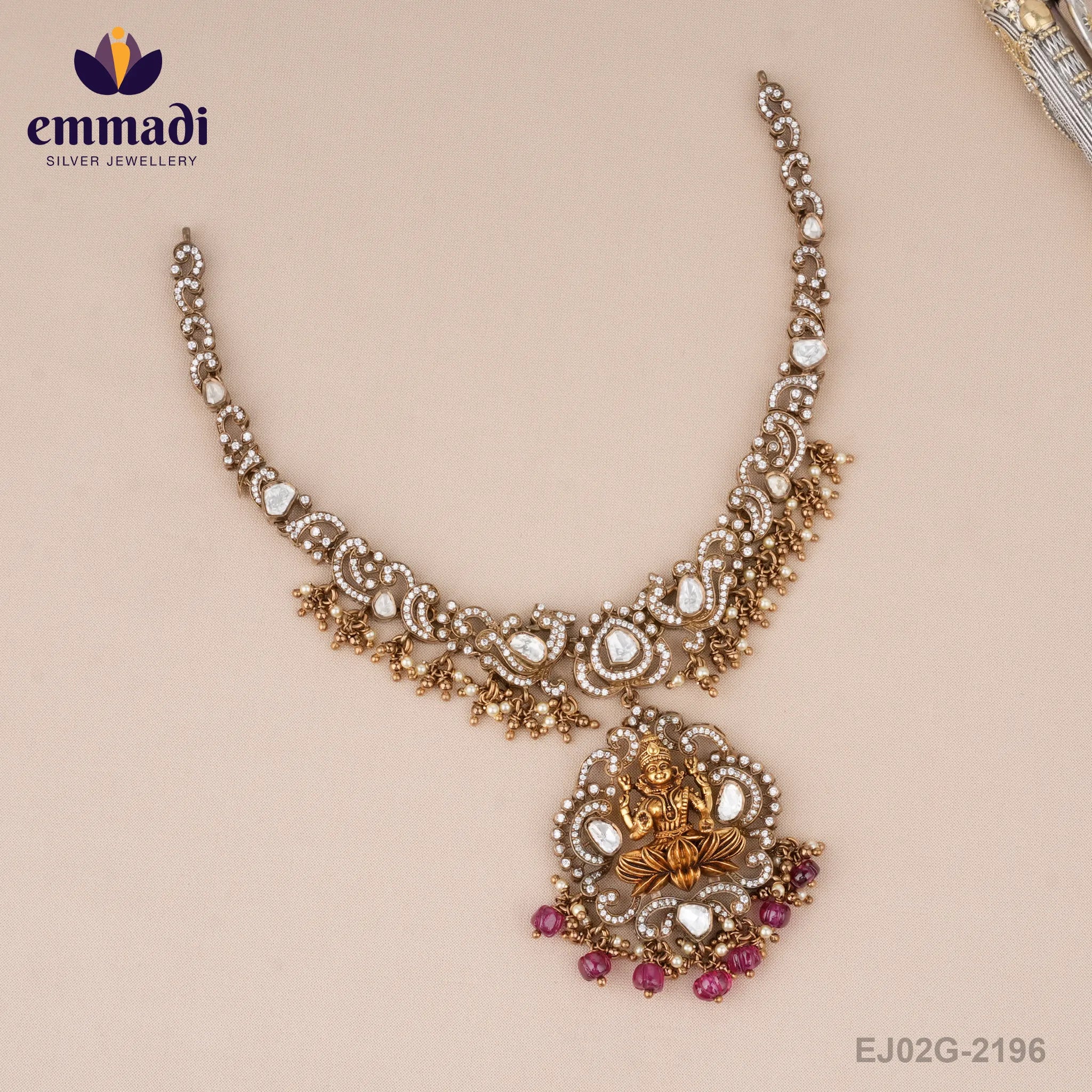 Indulge in the epitome of elegance with the Ketita Victorian White Necklace from Emmadi Silver Jeweller. Crafted with precision and adorned with intricate details, this exquisite piece exudes luxurious charm. Elevate any ensemble with this stunning necklace and make a statement of sophistication and grace. Experience the allure of timeless beauty with Emmadi Silver Jeweller, India's Largest silver brand.