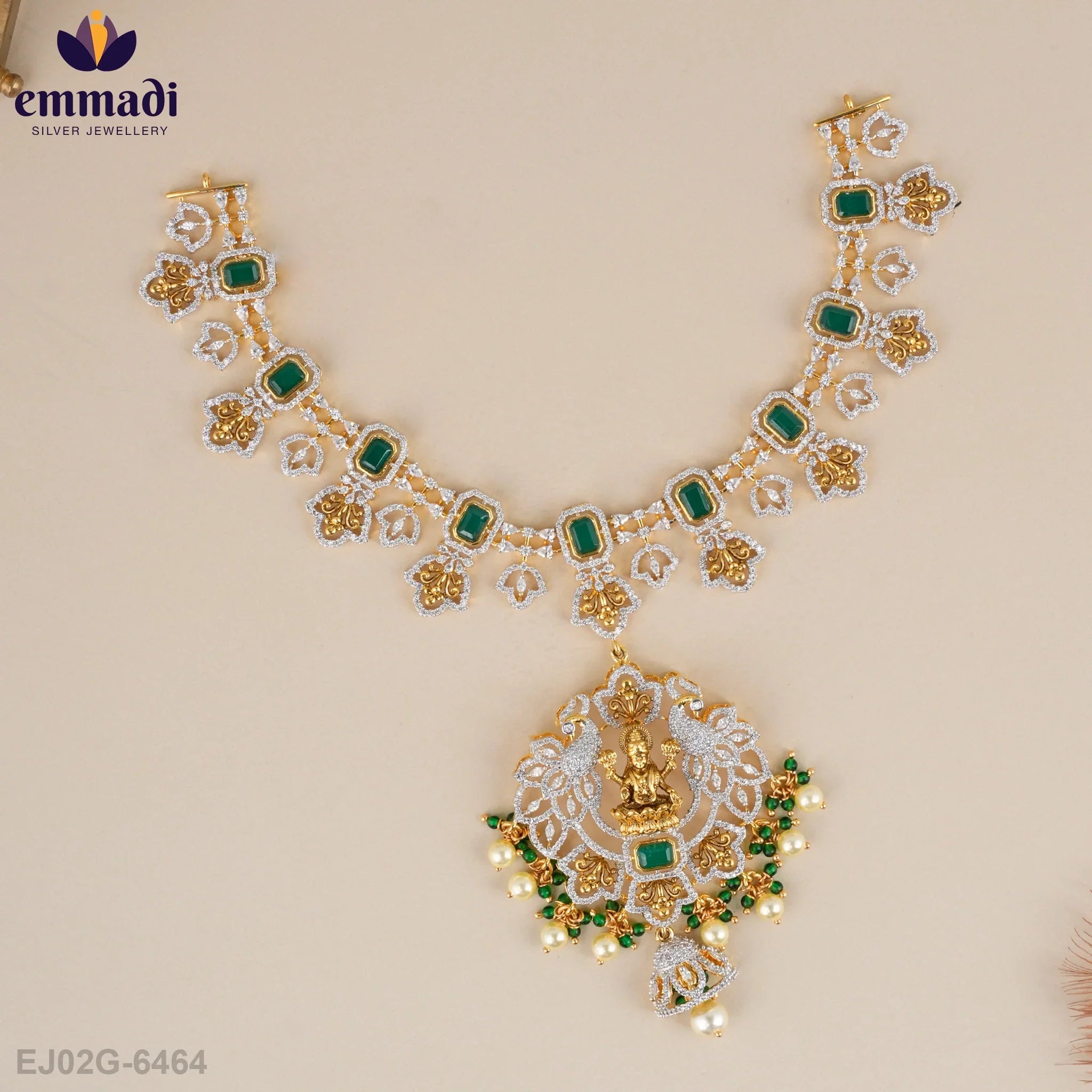 Indulge in the epitome of elegance with this exquisite jewelry set from Emmadi Silver Jeweller, India's largest silver brand. The collection features a stunning necklace and captivating earrings, both designed to elevate your style with unmatched sophistication and glamour. Crafted with precision, the necklace showcases a timeless allure, perfect for those who appreciate the finer things in life. Its design effortlessly combines elegance and charm, making it an ideal accessory for any occasion.
