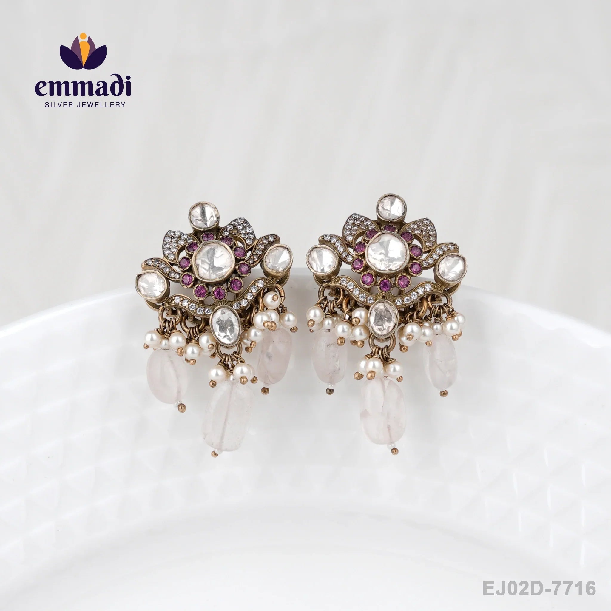 Complementing the necklace, the elegant stud earrings feature a delicate gemstone at the center, surrounded by intricate gold detailing that adds a refined touch to any outfit. Lightweight and comfortable, these earrings are designed for all-day wear, whether dressing up for a special occasion or adding a hint of sophistication to casual attire.