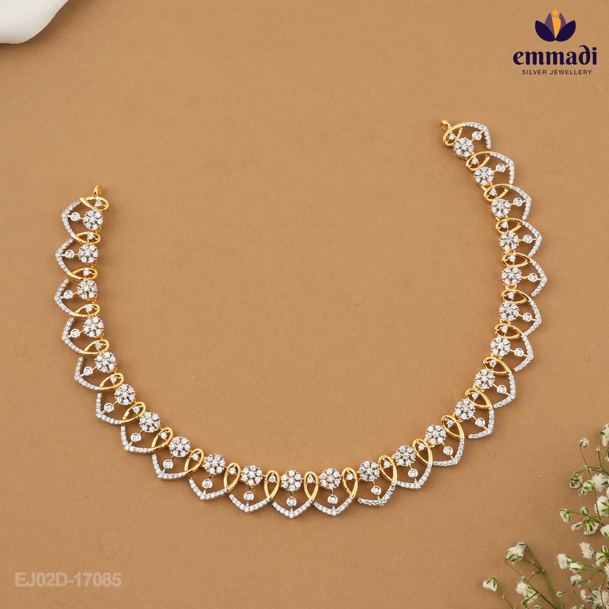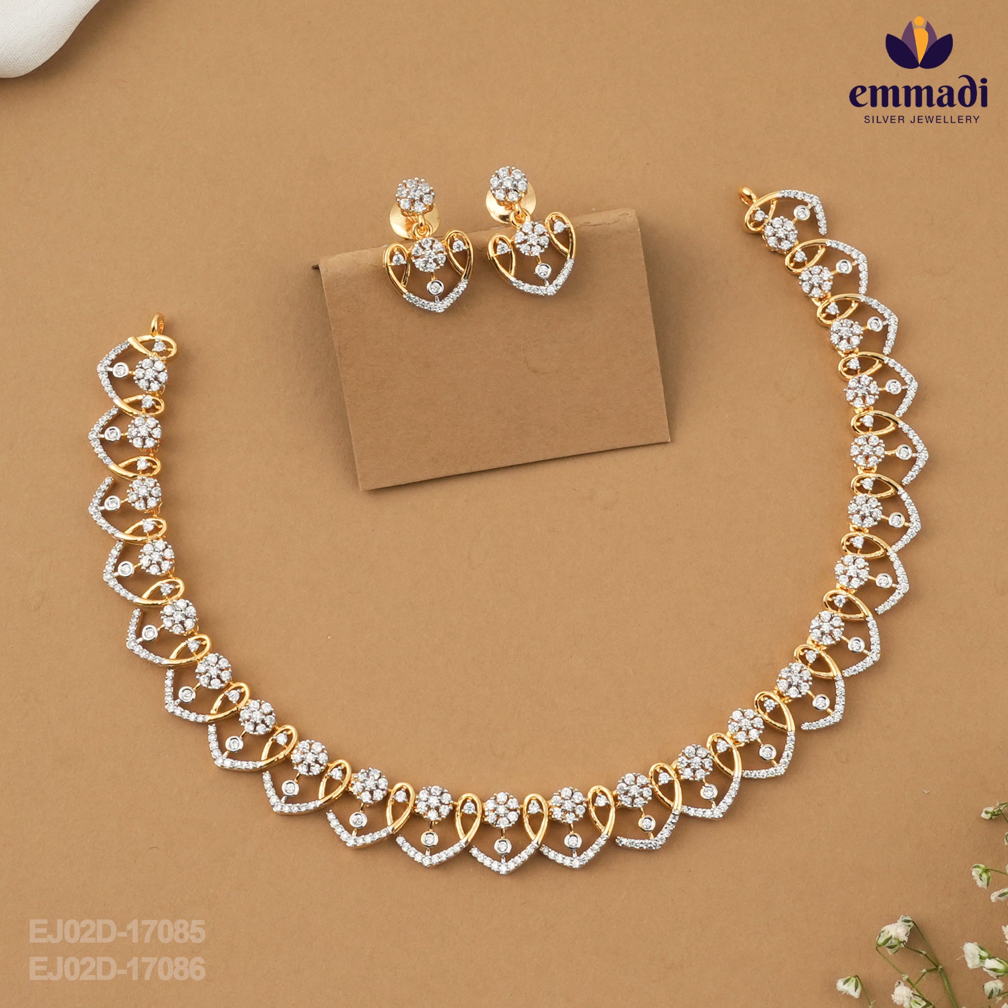 Introducing a stunning collection that exudes elegance and sophistication, perfect for those special occasions where you want to make a lasting impression. Handcrafted with meticulous attention to detail, each piece features dazzling cubic zirconia stones that sparkle brilliantly, reminiscent of real diamonds. The carefully selected white stones are set against a backdrop of pure 92.5 silver, elegantly finished with luxurious pure gold plating, ensuring a luxurious touch that is both lightweight and comfortable to wear.