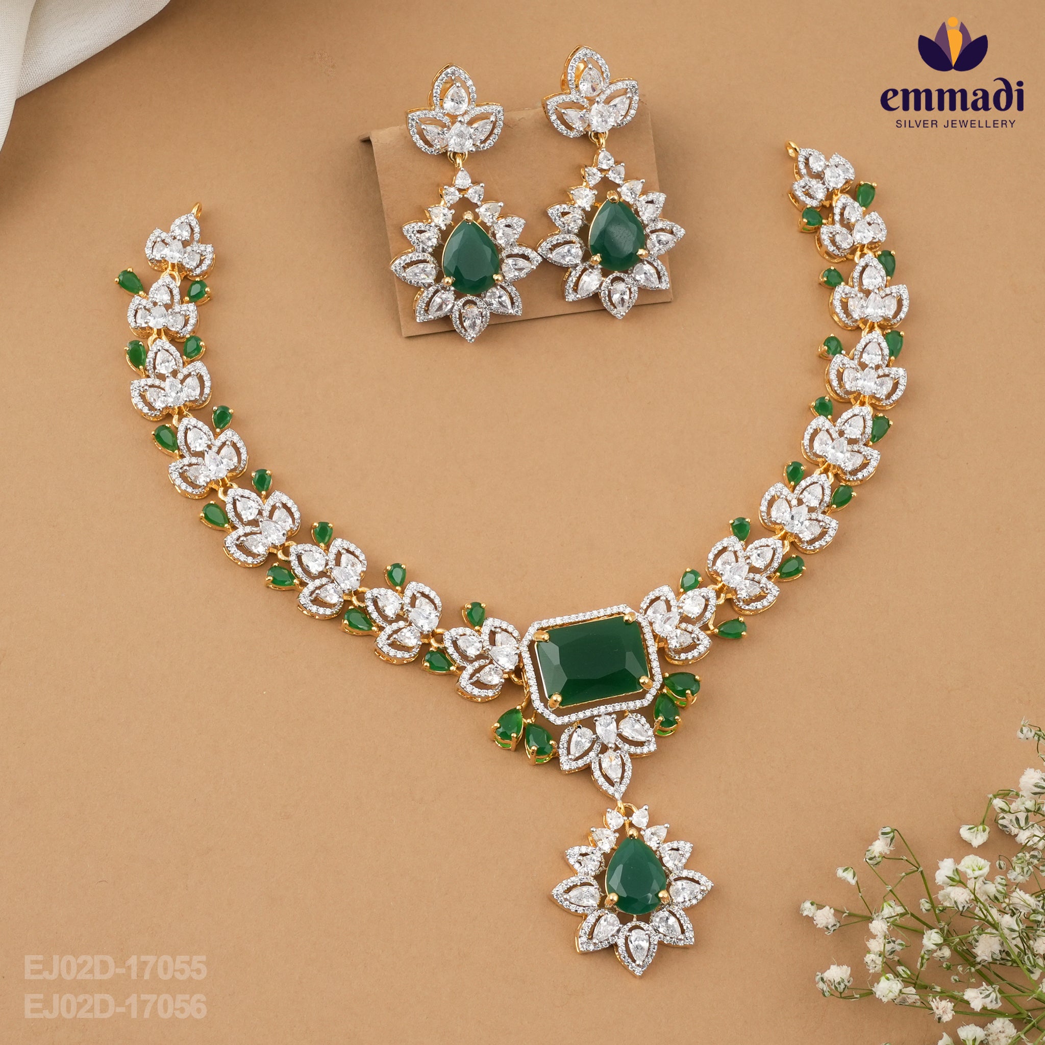 Discover the exquisite beauty of this stunning jewelry collection, a true testament to artistry and elegance. Handcrafted with meticulous care, each piece is made with pure 92.5 silver and adorned with premium cubic zirconia that sparkles brilliantly. The captivating green stones add a vibrant touch, perfect for special occasions or evening outings where you want to stand out.