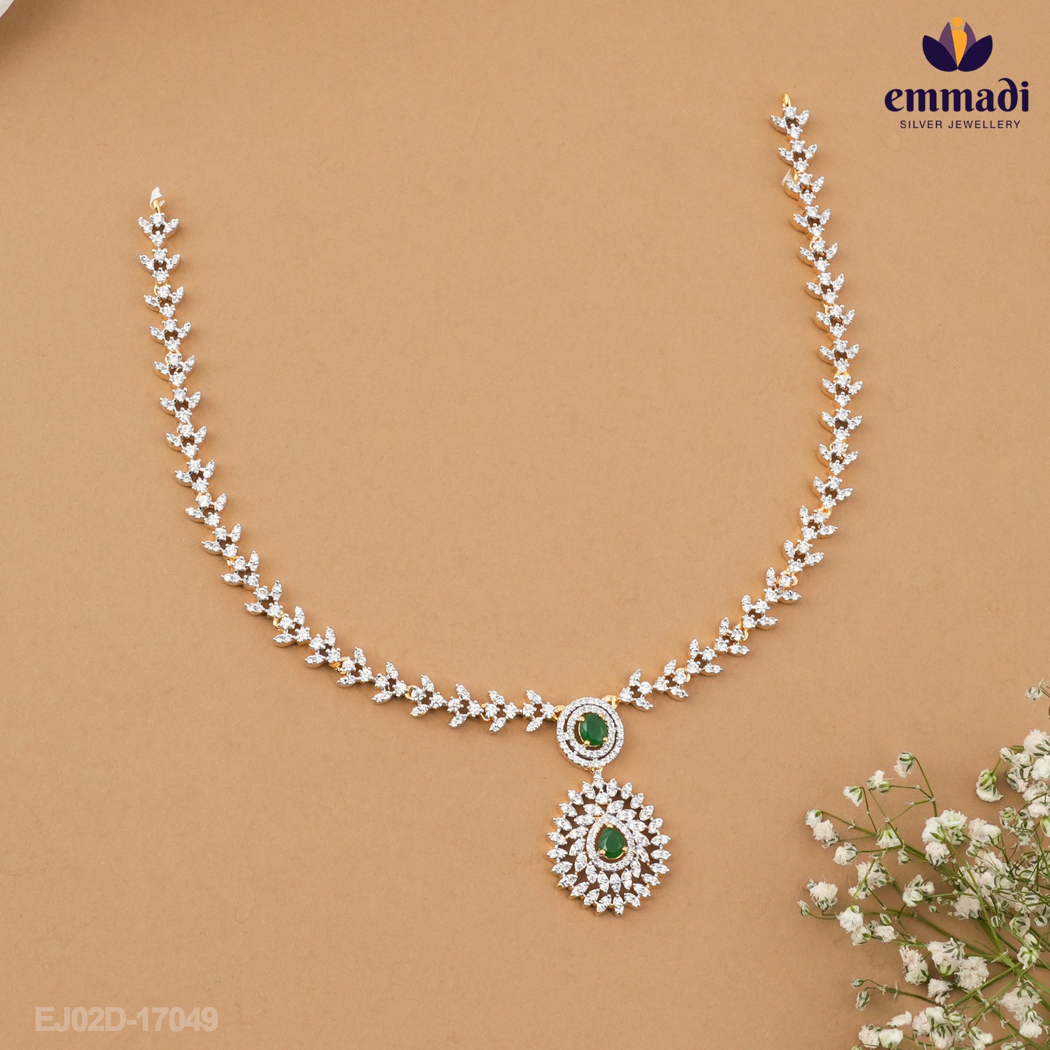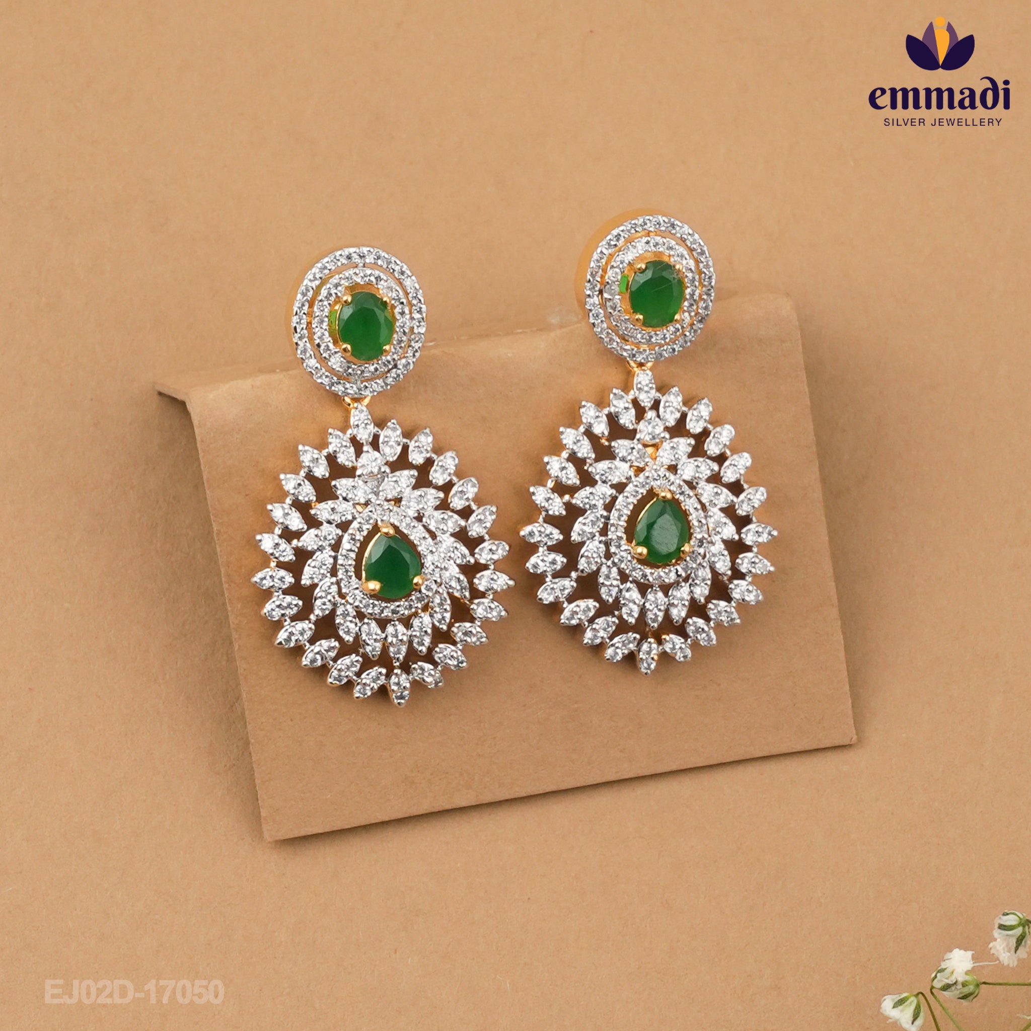 Discover the exquisite beauty of our premium jewelry collection, featuring stunning pieces designed by skilled artisans at Emmadi. Each item showcases dazzling cubic zirconia stones in a vibrant green hue, adding an elegant pop of color to any outfit. Handcrafted with meticulous attention to detail, these luxurious accessories are made from pure 92.5 silver and expertly plated in pure gold, radiating sophistication and charm.
