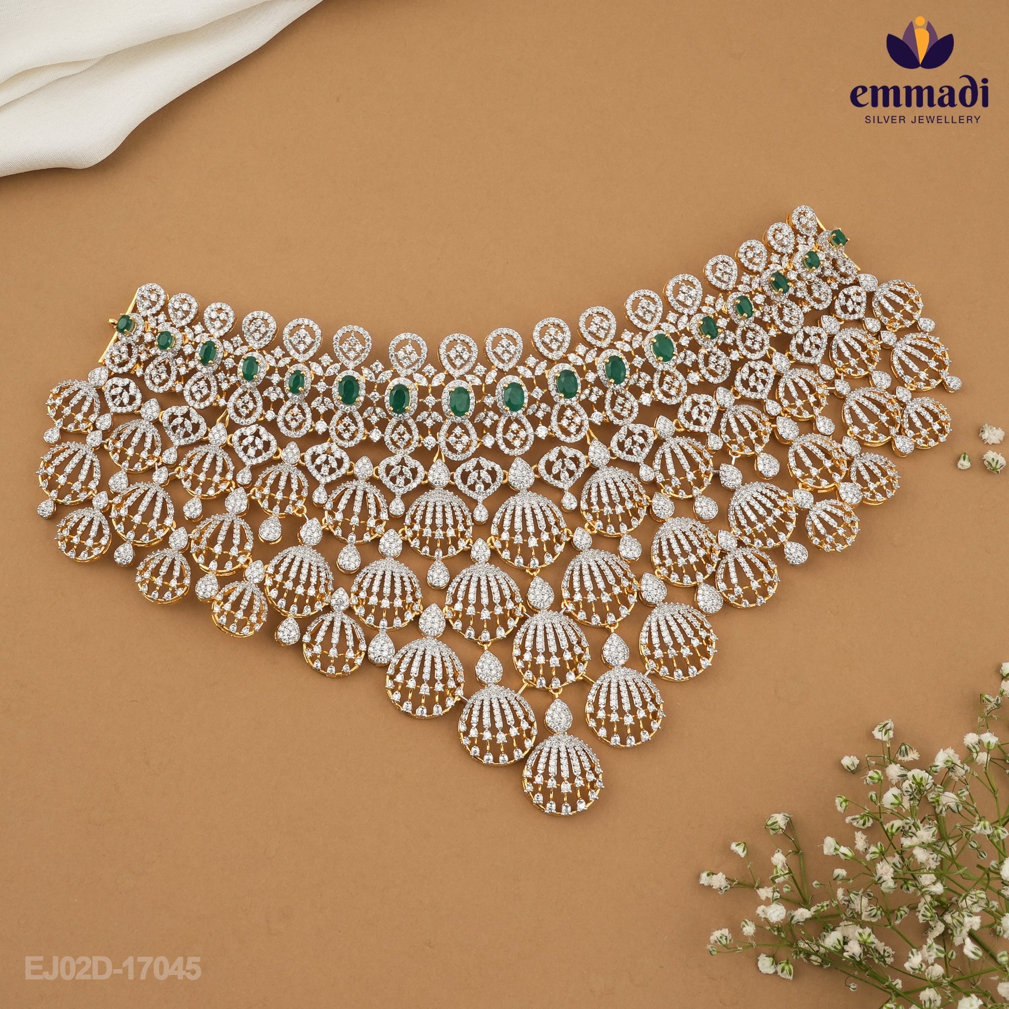 Introducing a stunning jewelry set that elegantly combines sophistication and artistry, perfect for elevating your collection. This exquisite combination features a radiant green stone and vibrant cubic zirconia, meticulously handcrafted with pure gold plating, ensuring a luxurious finish that captivates the eye. Designed by the talented artisans at Emmadi, each piece reflects unparalleled craftsmanship and attention to detail, making it an ideal statement accessory for special occasions.
