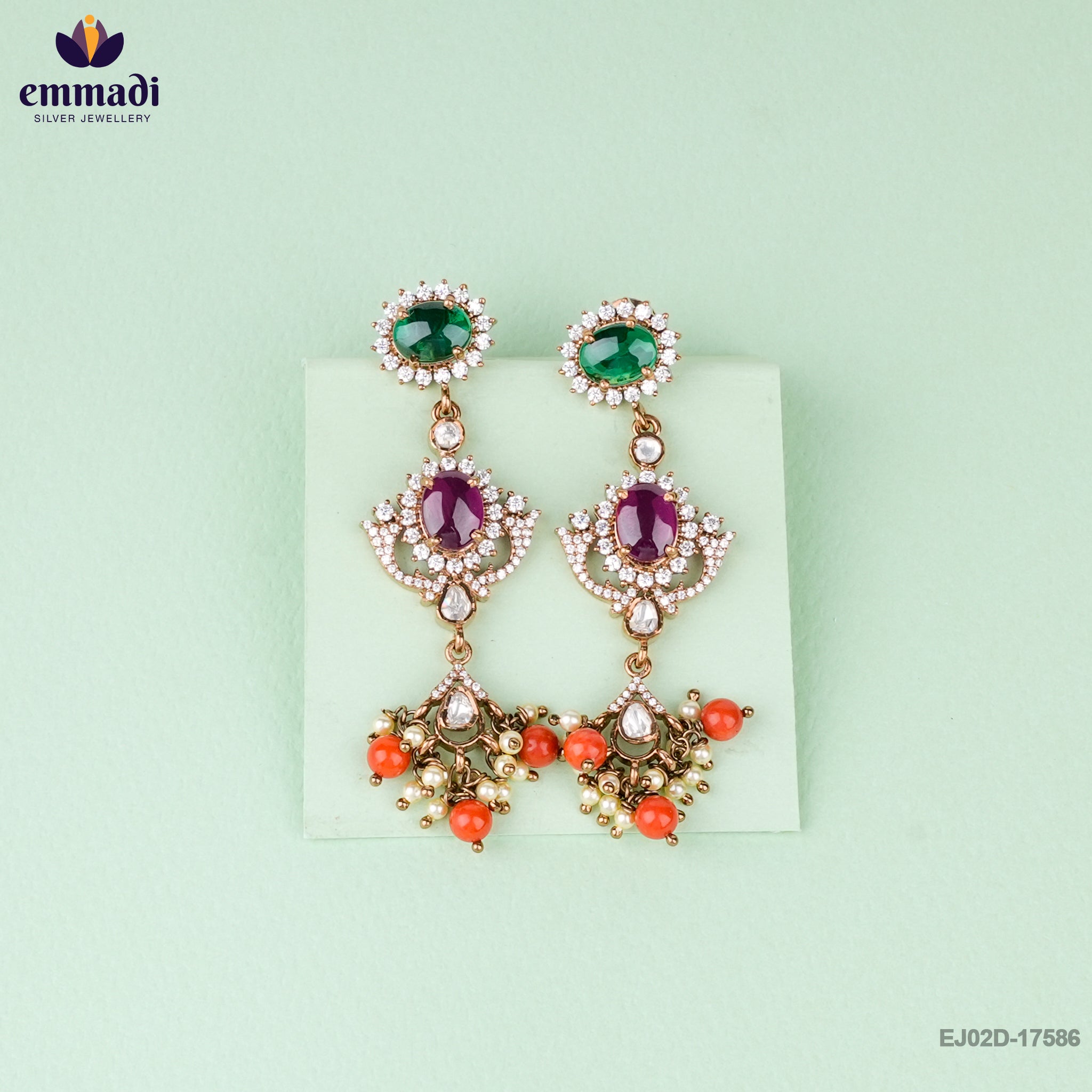 Complementing the necklace, the hangings are crafted from premium quality silver, featuring a polished finish that beautifully reflects light. The intricate design showcases vibrant colors, including rich blues, deep reds, and soft greens, creating an eye-catching effect that elevates any ensemble. Each piece is adorned with delicate filigree patterns, framing colorful gemstone accents that embody the essence of Victorian aesthetics.