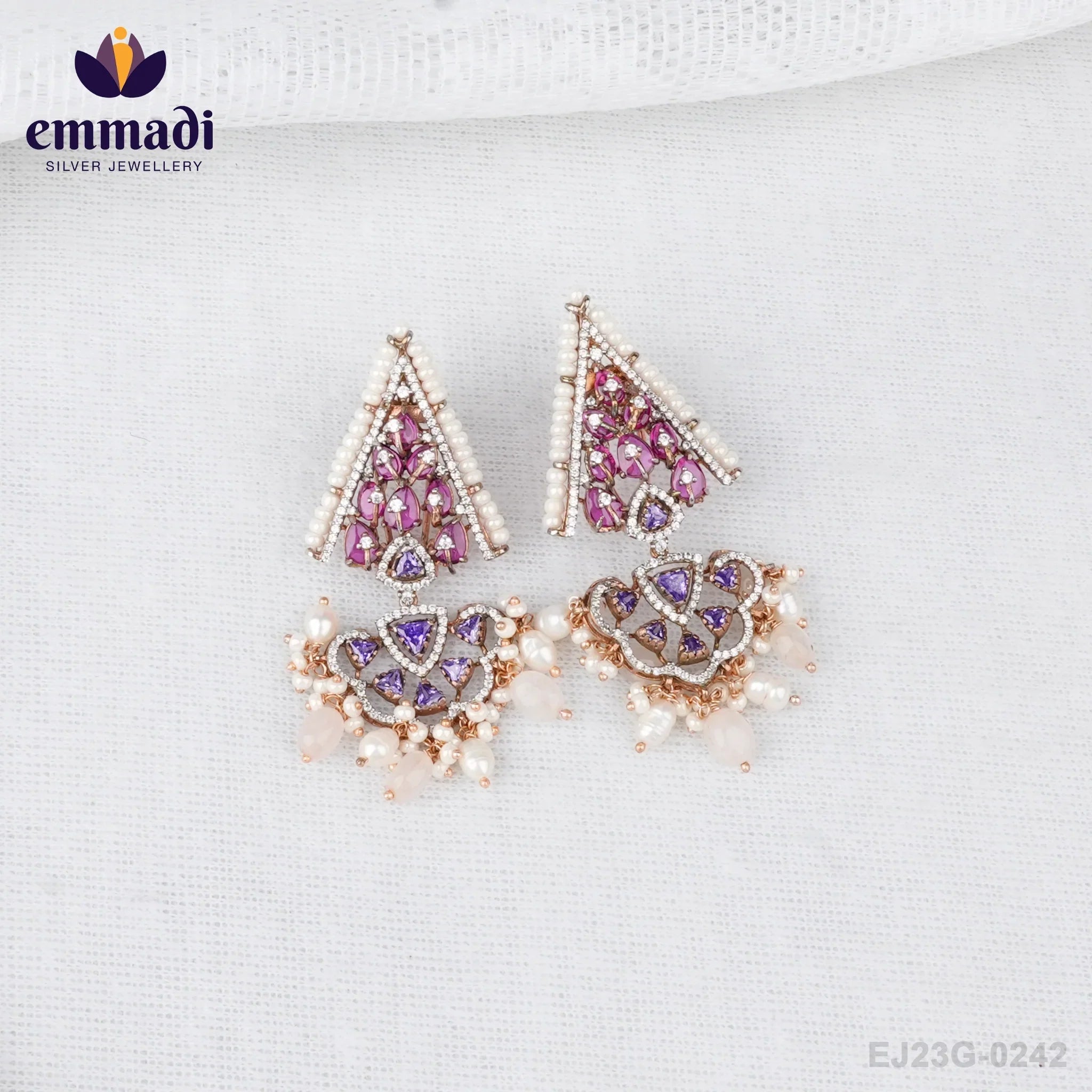Complementing the choker are exquisite earrings that feature a unique multi-hanging design, incorporating two different colored stones. These earrings are not just accessories; they are true works of art, showcasing the skill and dedication of talented artisans who employ traditional techniques to create each piece. The attention to detail ensures that every pair is one-of-a-kind, making them a standout choice for any outfit.