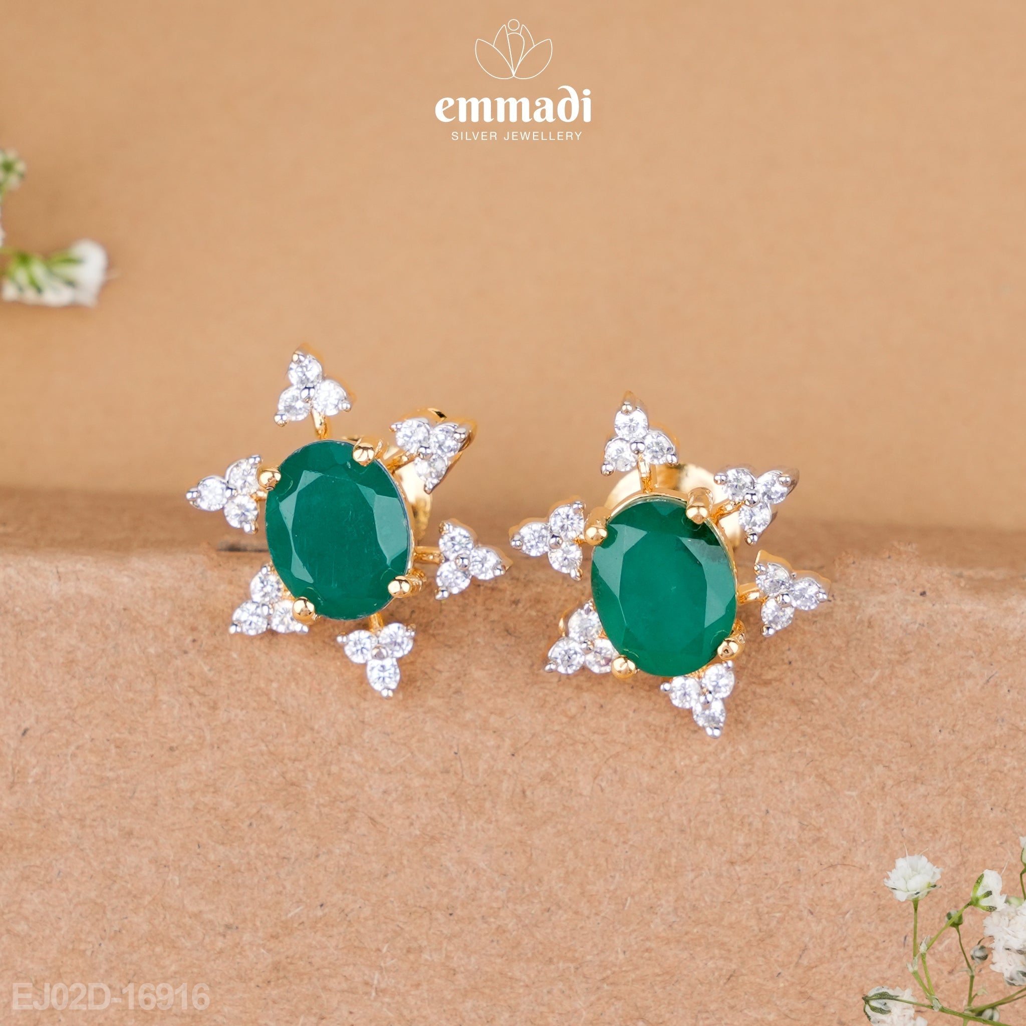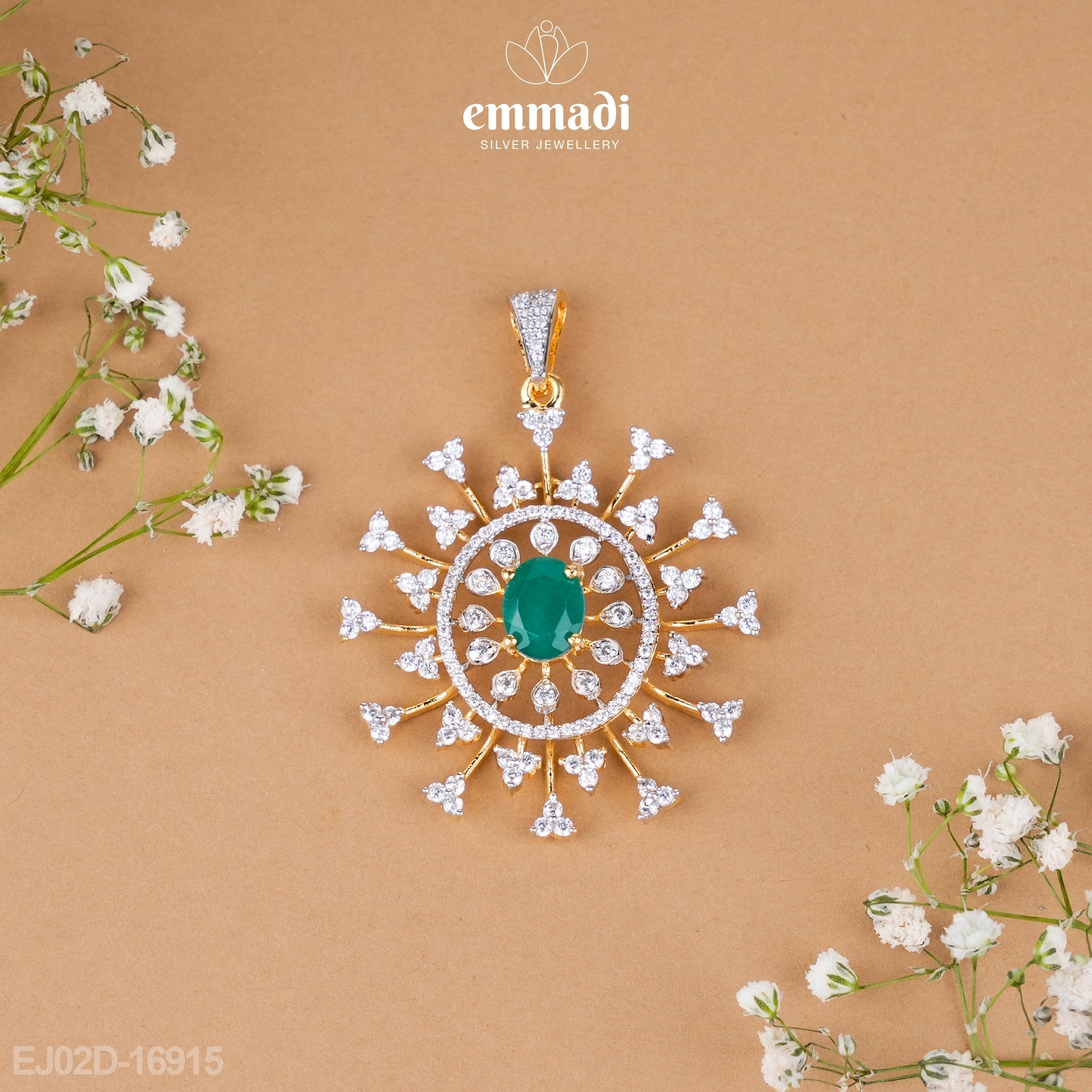 Elevate your jewelry collection with exquisite pieces that embody luxury and artistry, designed by the renowned brand Emmadi. The stunning pendant and captivating studs showcase beautiful green CZ stones, each piece capturing the eye with vibrant hues and brilliant sparkle. Handcrafted with meticulous attention to detail, these accessories are made from Pure 92.5 Silver and adorned with luxurious pure gold plating, ensuring a perfect choice for special occasions.
