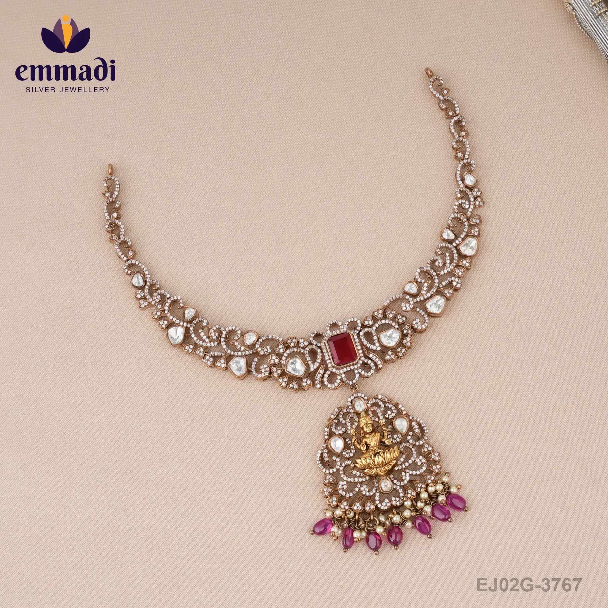 Indulge in opulent elegance with the Tu?ava Victorian Red Necklace, a captivating masterpiece by Emmadi Silver Jeweller, India's Largest silver brand. This exquisite piece exudes sophistication and charm, making it the perfect accessory to elevate any ensemble. Adorn yourself with the allure of Victorian red hues and make a statement of timeless luxury wherever you go. Elevate your style and embrace the essence of beauty with this magnificent necklace.