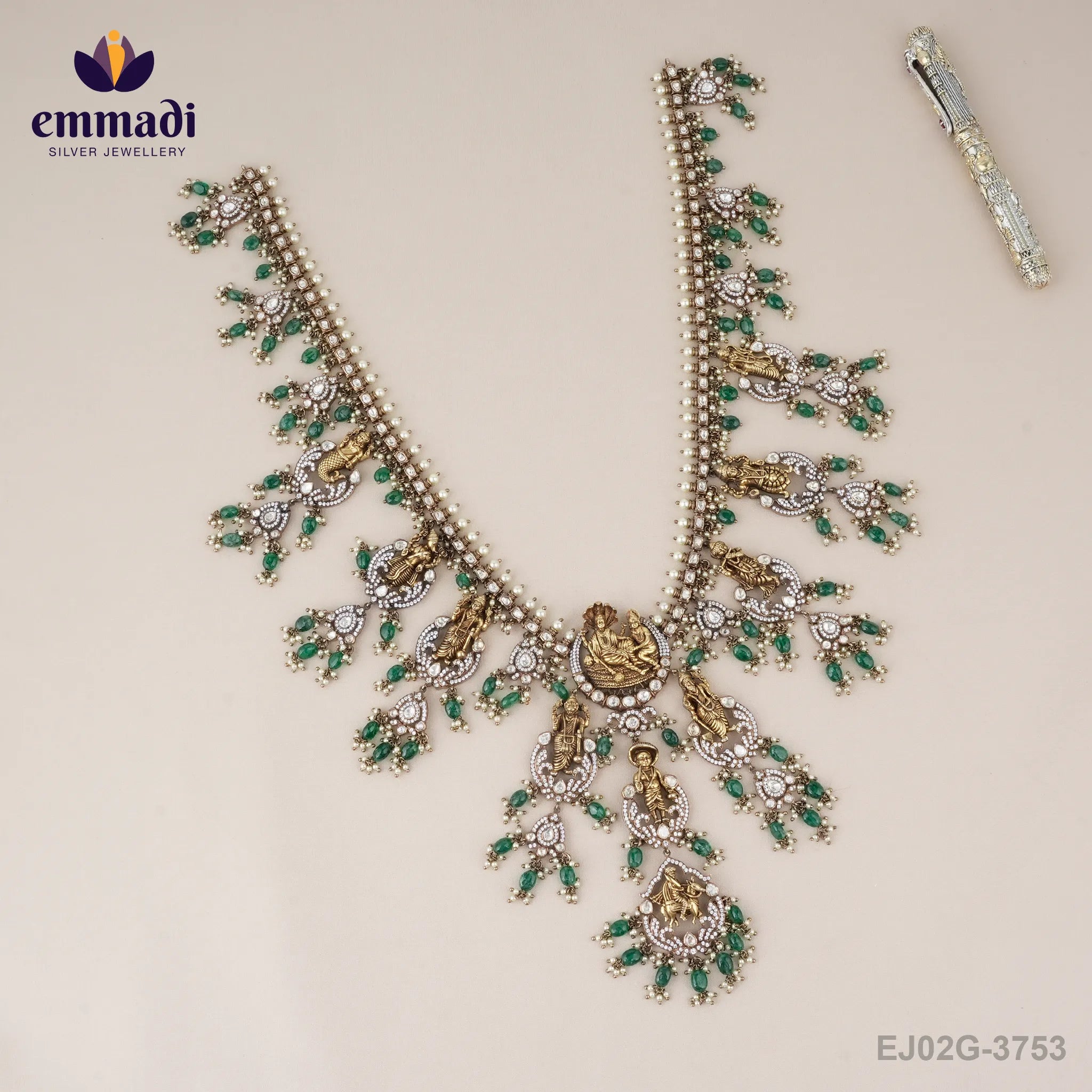 Indulge in the elegance of Victorian-inspired jewelry with this exquisite collection from Emmadi Silver Jeweller, India's largest silver brand. Featuring a stunning green hue that exudes sophistication and charm, this captivating assortment is designed to elevate your style effortlessly. Whether you’re dressing up for a special occasion or adding a touch of luxury to your everyday look, these timeless pieces are sure to make a statement.