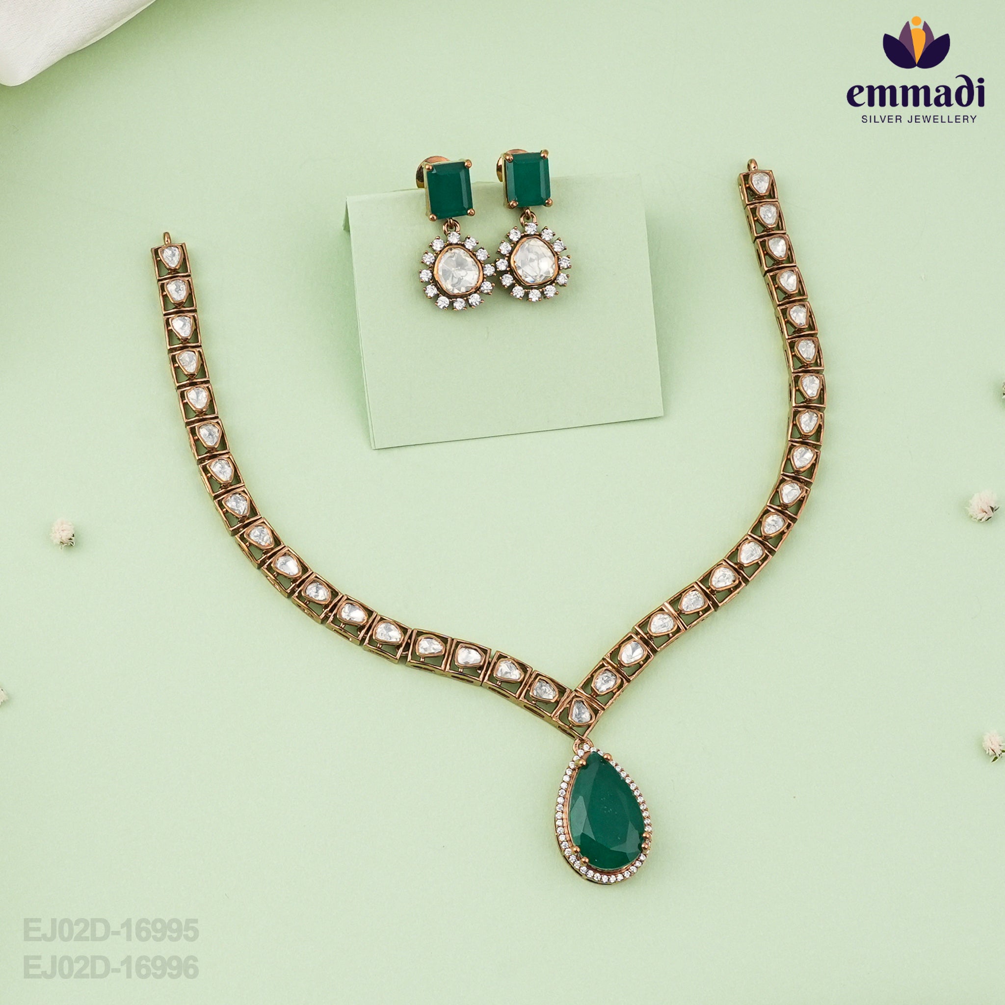 Expertly designed by the renowned Emmadi, these accessories reflect intricate detailing that embodies the timeless charm of Victorian-era artistry. The harmonious combination of rich green stones with the gleaming gold-plated finish creates a striking contrast, ensuring you turn heads and elevate any ensemble. While these pieces are crafted with elegance in mind, they are intended as statement accessories for weddings, parties, and other memorable events.